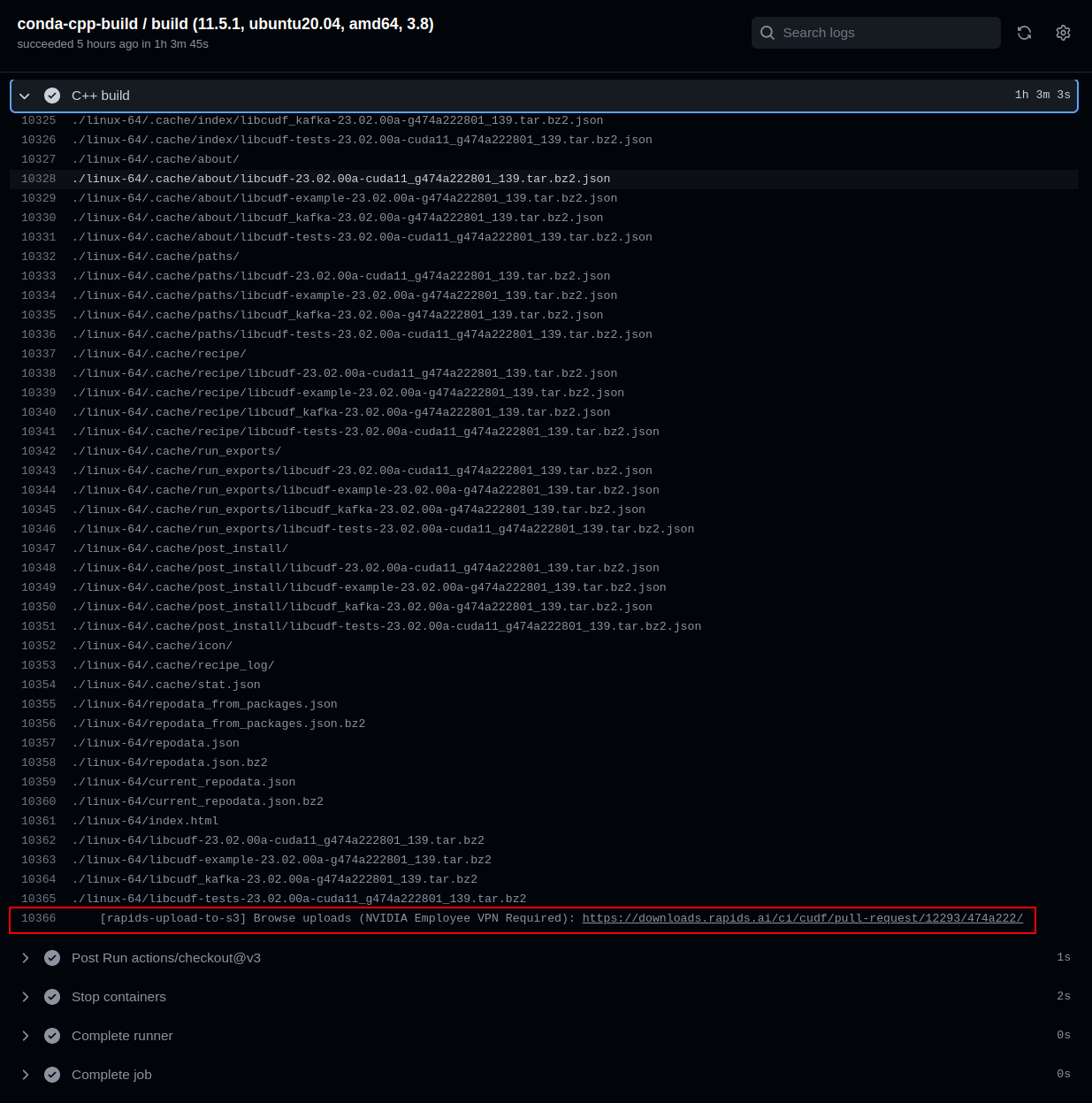 RAPIDS’ CI system compresses the wheels that it builds into tarballs and uploads them to https://downloads.rapids.ai/.